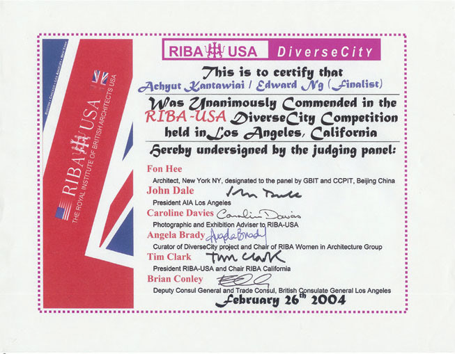 RIBA – USA, Diverse City Exhibition, Finalist, Exhibited US, UK, Australia & China, 2004-2005