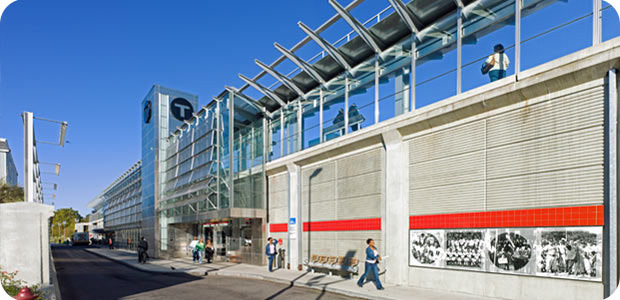 Ashmont Station (below) is the southern terminus for the MBTA's Red Line, bus interchange and high-speed trolley. The design creates a dynamic new urban space at Peabody Square. Fields Corner (above) is also a major bus/transit internodal station on the Red Line. The design integrates the station back into the community and the urbanism of Dorchester Avenue with a new at-grade entrance, lobby, and bus terminal.
